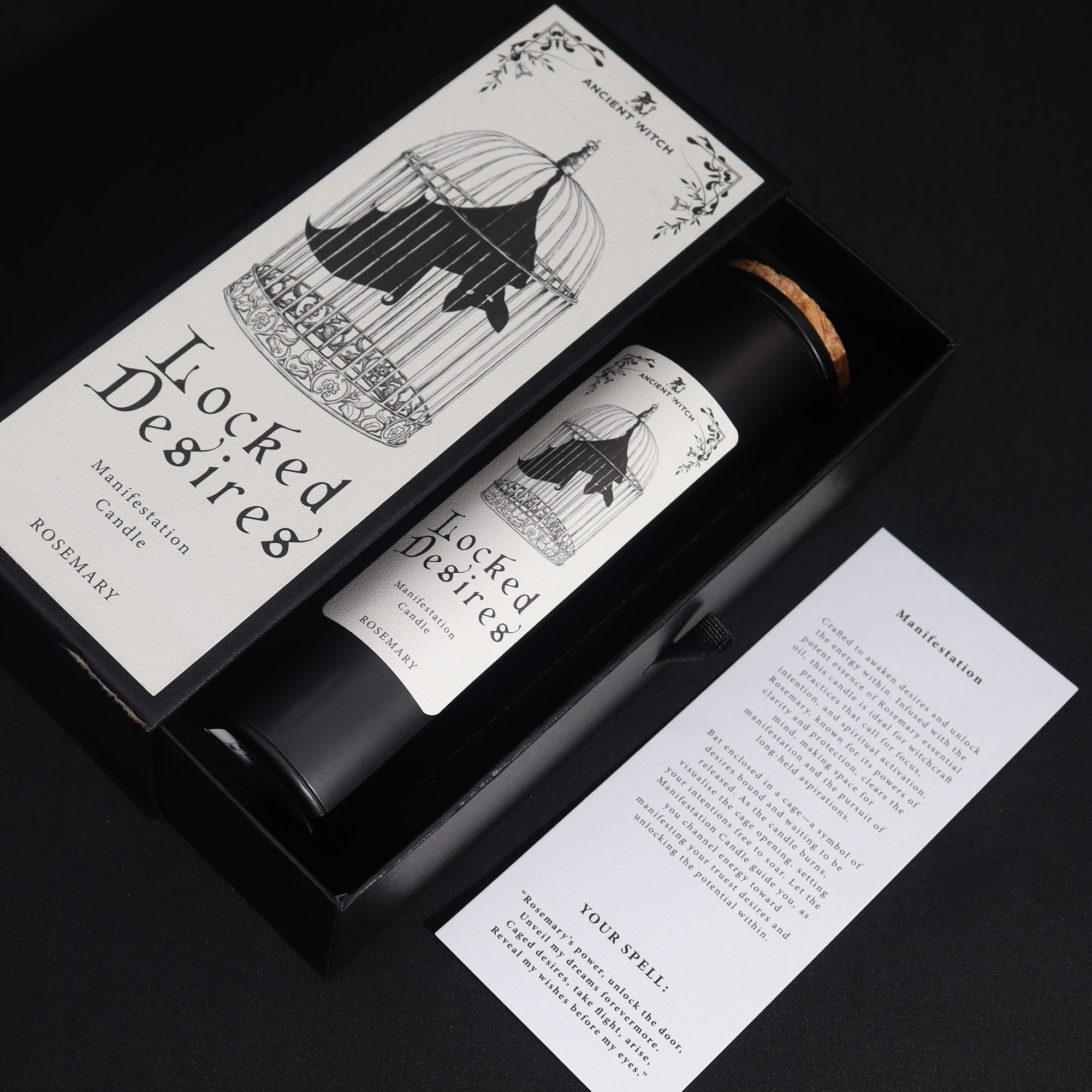 Tap into hidden potential with this powerful manifestation candle. The symbolic bat in a cage represents suppressed dreams and unspoken intentions ready to be released. Rosemary enhances focus and intention-setting during rituals.