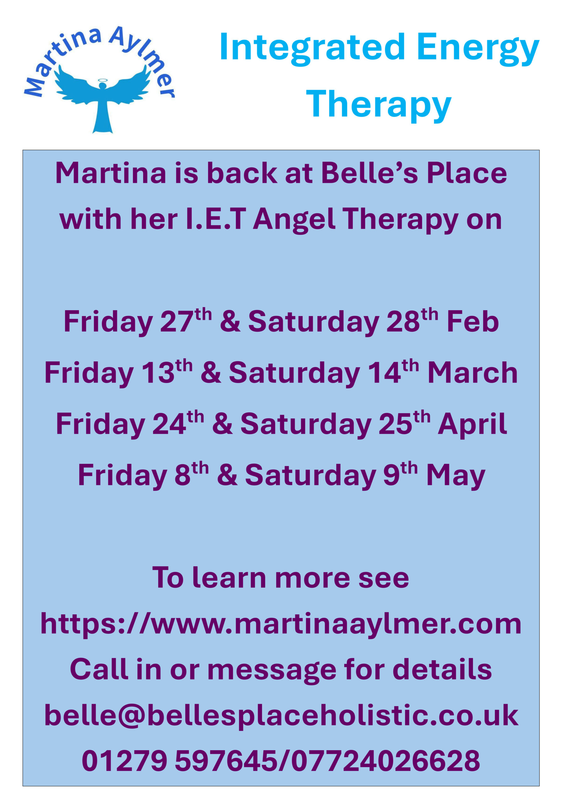 Martina is back at Belle’s Place with her I.E.T Angel Therapy on