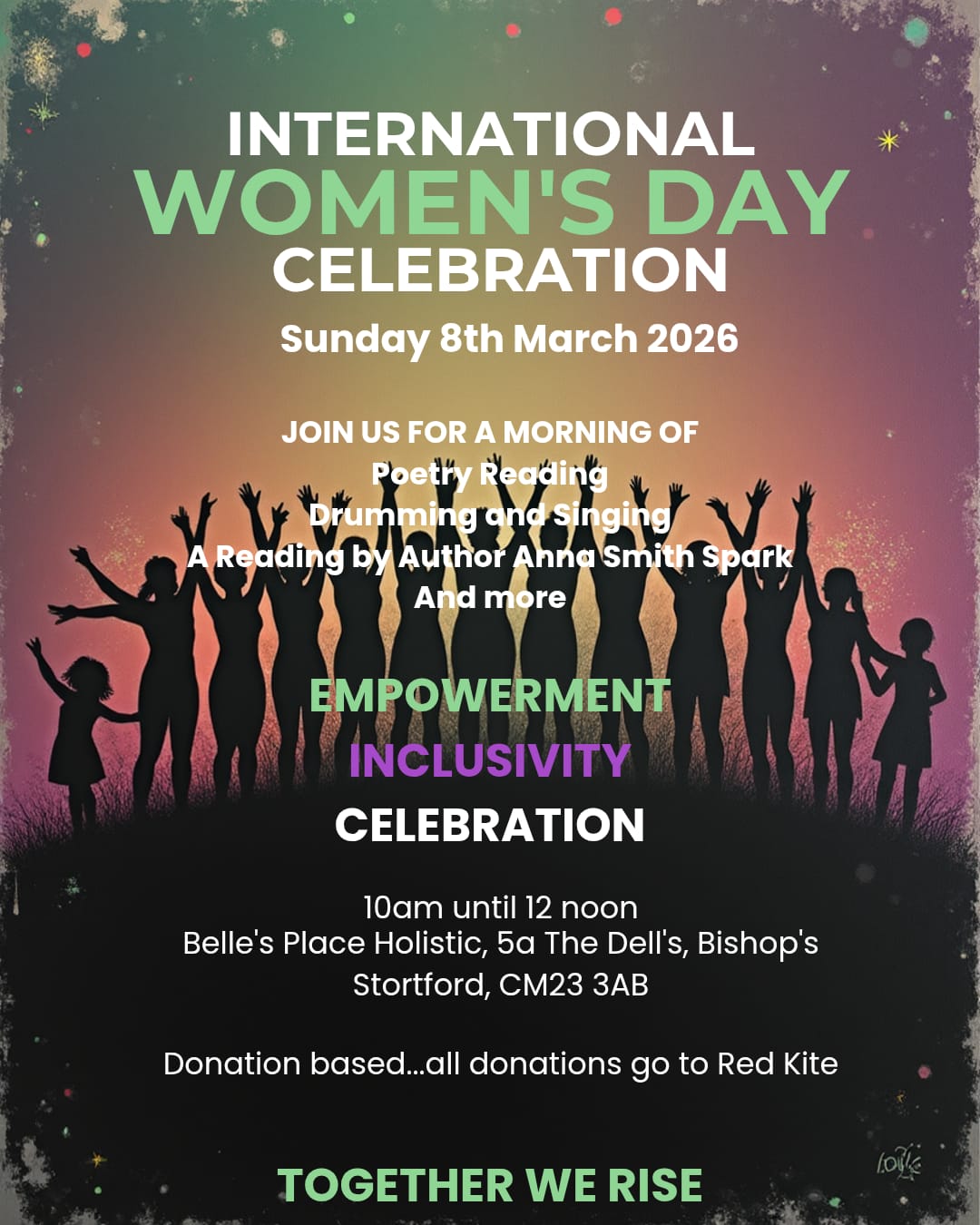 Join us on Sunday 8th March at 10am to celebrate International Women’s Day. There is no need to book, just come along. Like so many things we do, we don’t know what will happen because we go with the flow, so bring your energy and join with Drumming, share poems, sing along, explore strong women in fiction with our very own Charlie Pinky Ramnani and Anna Smith Spark and help us explore the strength and power of women whilst also raising money for a good cause.