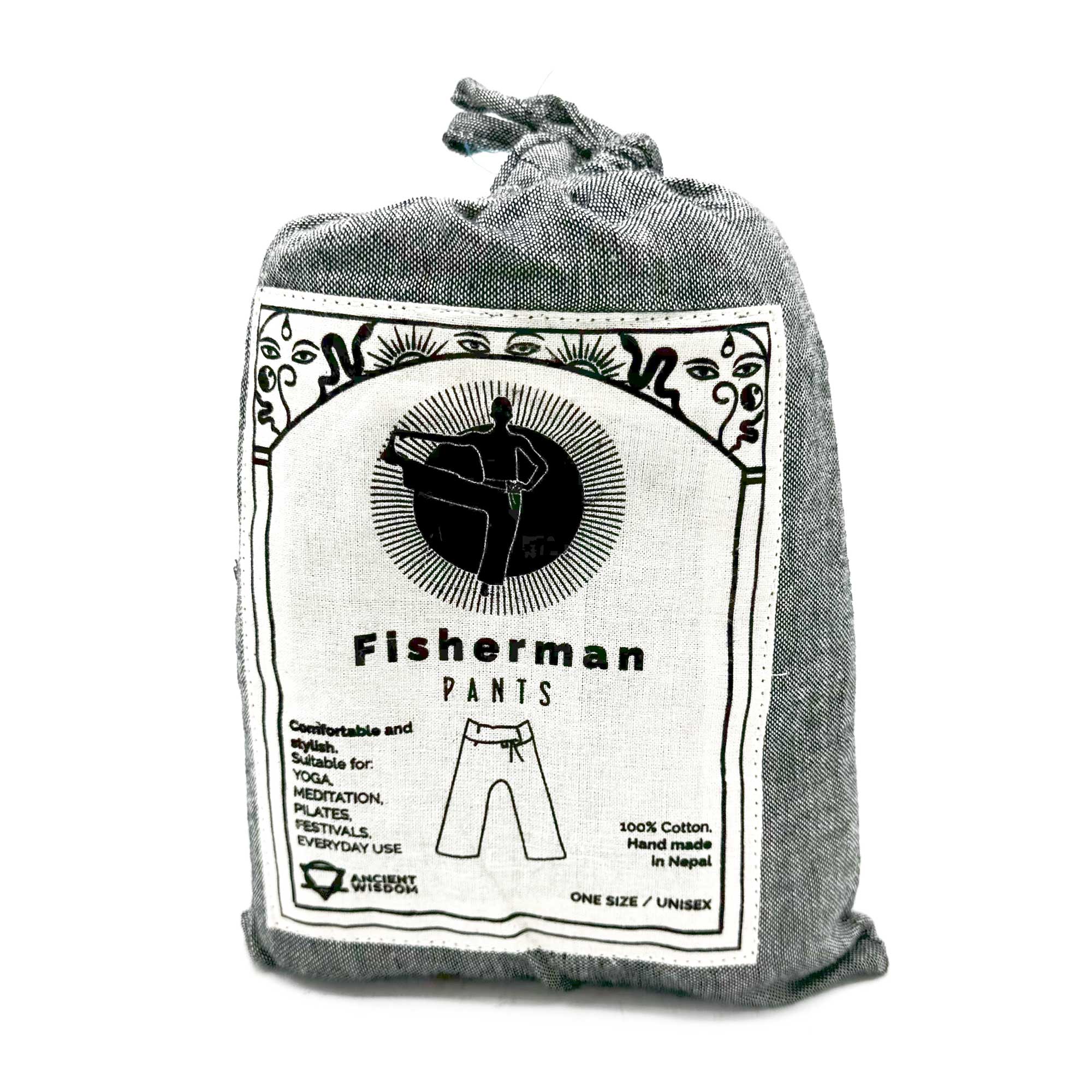 Yoga and Festival Pants – Thai Fisherman Mandala Mantra on Grey